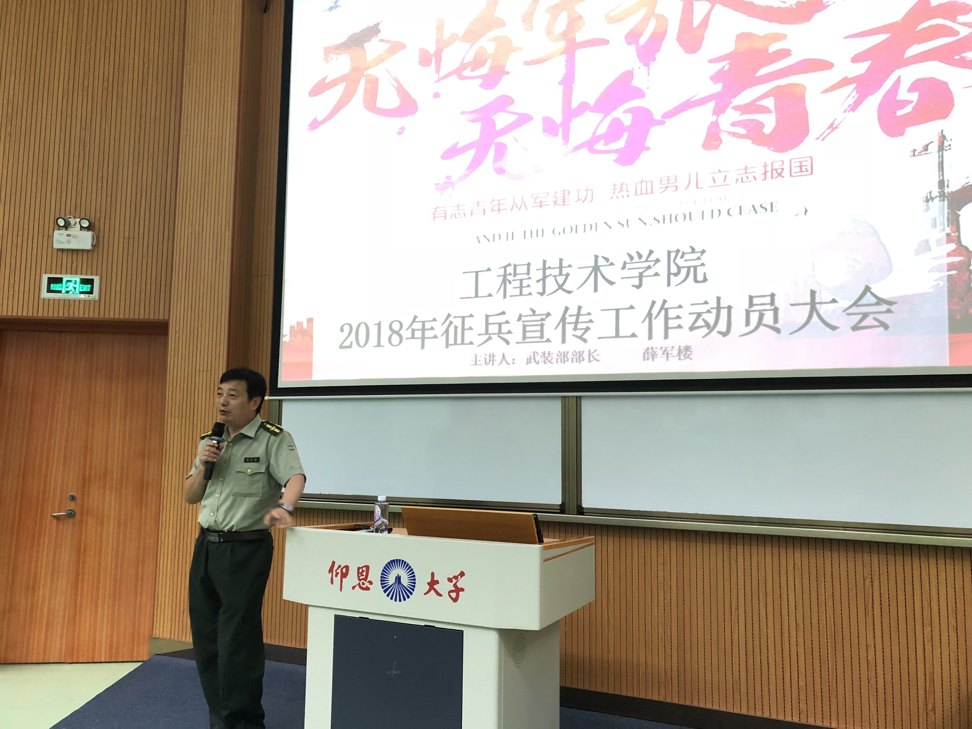 5月21日,betway西汉姆联官网在旧区和昌乐之讲堂举办大学生征兵入伍政策宣传教育主题活动。本次讲座邀请校武装部部长薛军楼主讲,学院党总支书记兼副院长曾凤生,总支副书记吕思仁,全体辅导员,学院各年级学生干部,党员,以及团委学生会骨干参加本次讲座。