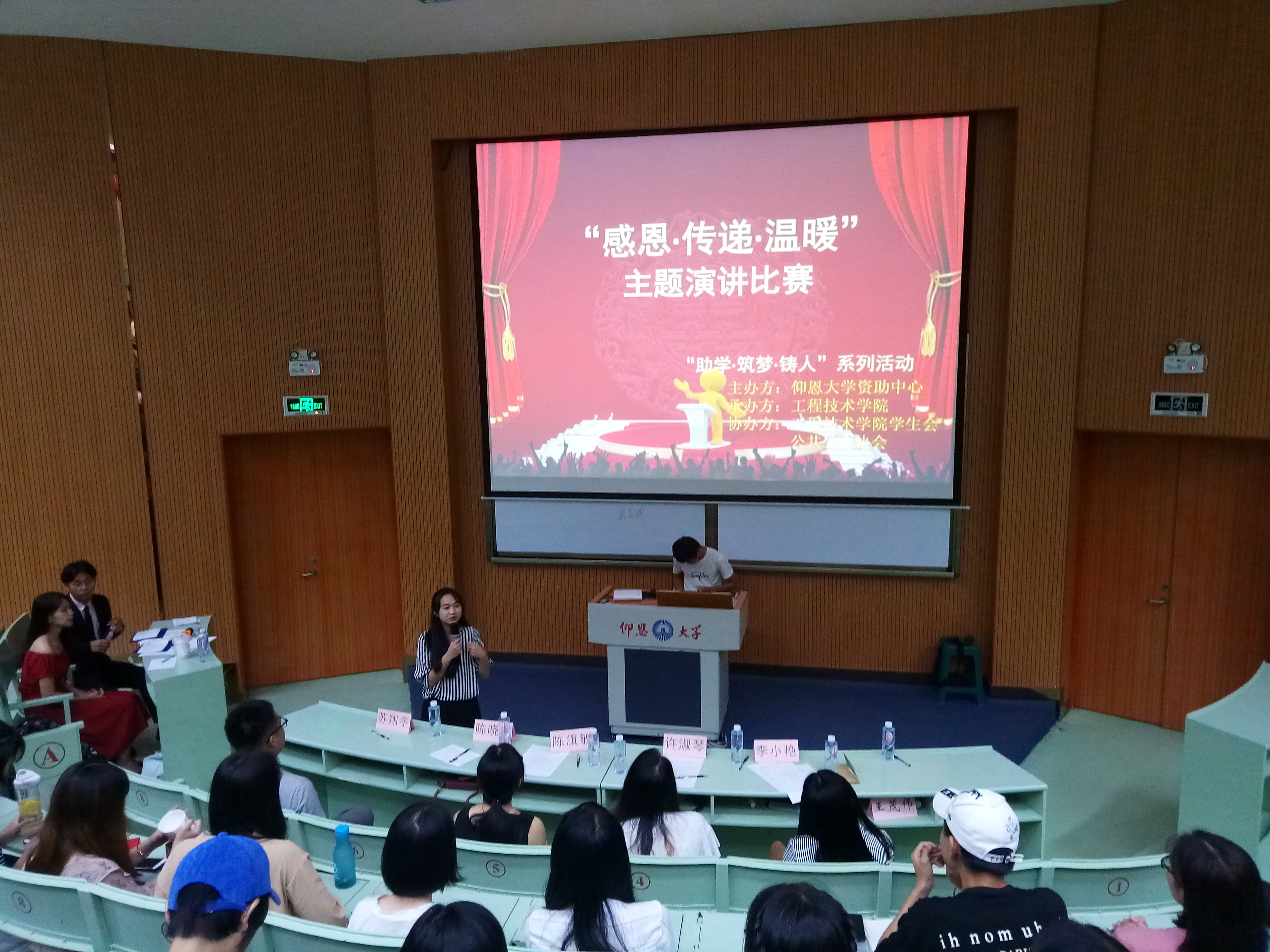 6月6日晚上7点半betway西汉姆联官网在旧区和昌乐之讲堂举行了“助学·筑梦· 铸人” 系列演讲活之“感恩.传递.温暖”主题演讲比赛。出席此次活动的嘉宾有学生会指导老师陈晓红、院团委书记许淑琴、学务秘书陈旗敏、教师李小艳。