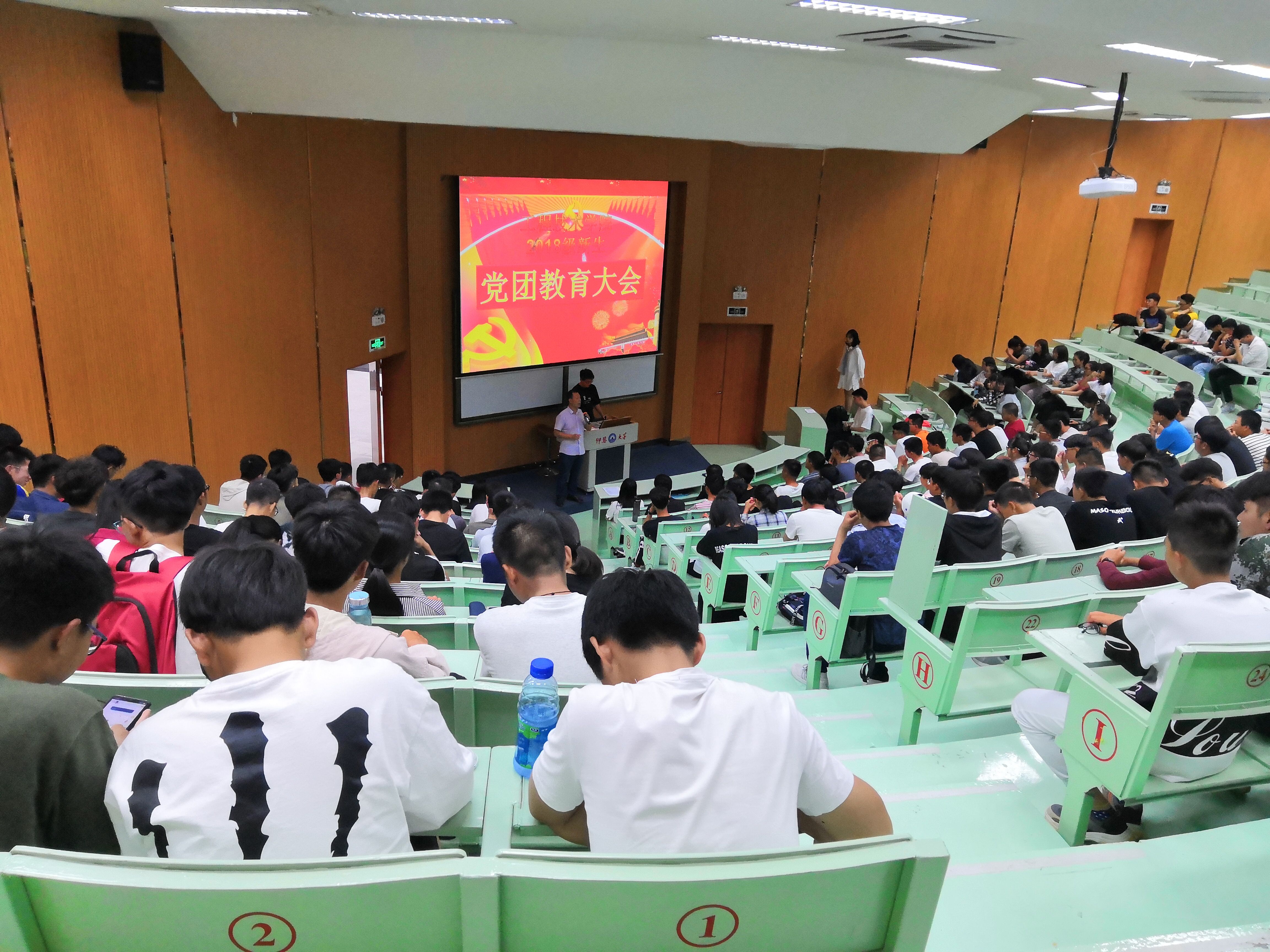 2018年10月10日下午16:30,betway西汉姆联官网2018级新生党团教育大会在第一教学区和昌楼乐知讲堂如期举行。出席大会的有党总支书记兼副院长曾凤生老师、党总支副书记吕思仁老师、院团委书记许淑琴老师及2018级全体学生。
