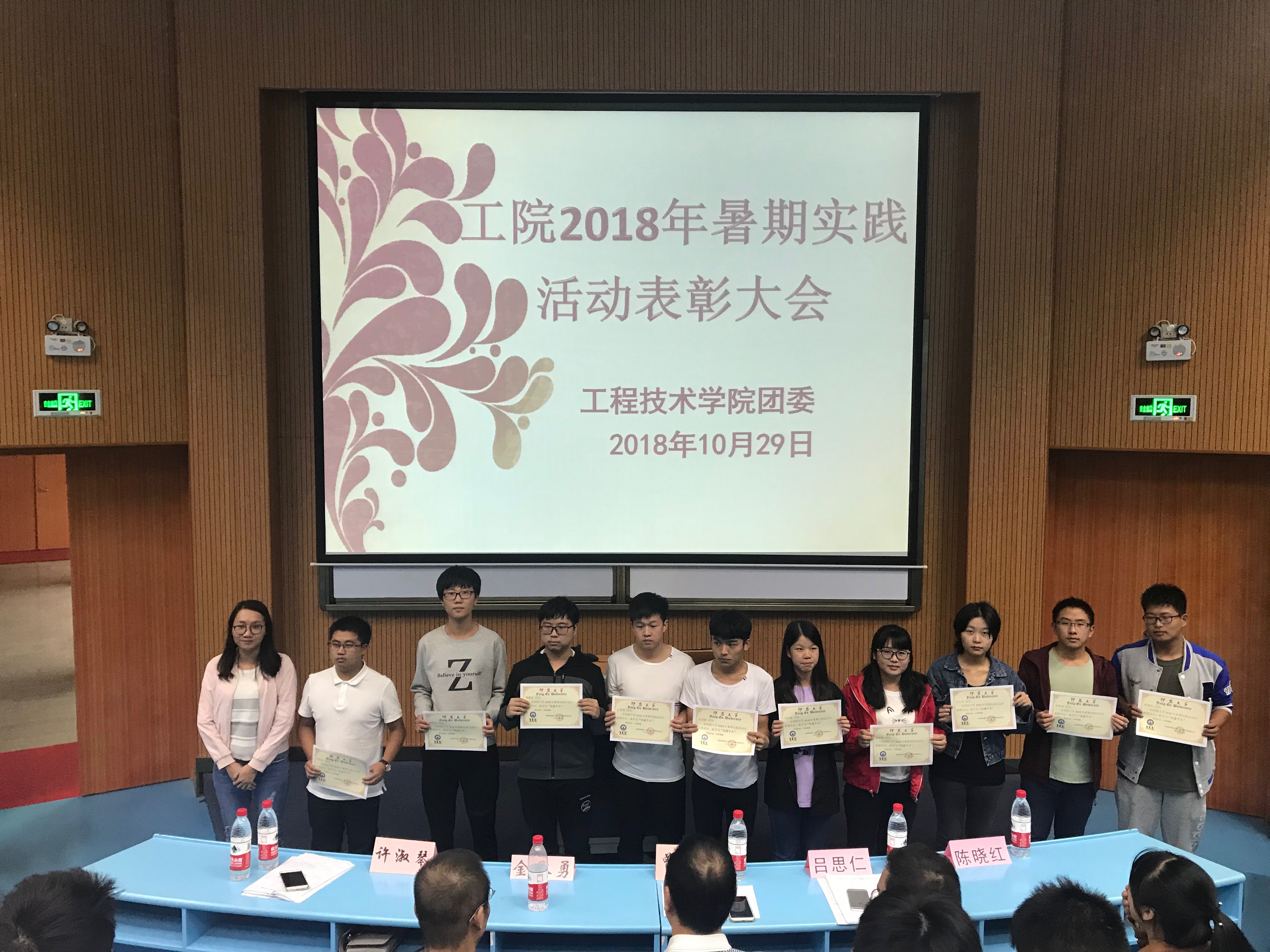 10月29日下午4点,betway西汉姆联官网团委在和昌求是讲堂举行betway西汉姆联官网2018年暑期实践活动表彰大会,学院党总支书记兼副院长曾凤生老师,学院常务副院长金承勇老师,学院党总支副书记吕思仁老师,学院团委书记许淑琴老师,学院学生会指导老师陈晓红老师,2018年全体工院新生及获奖人员出席本次大会。