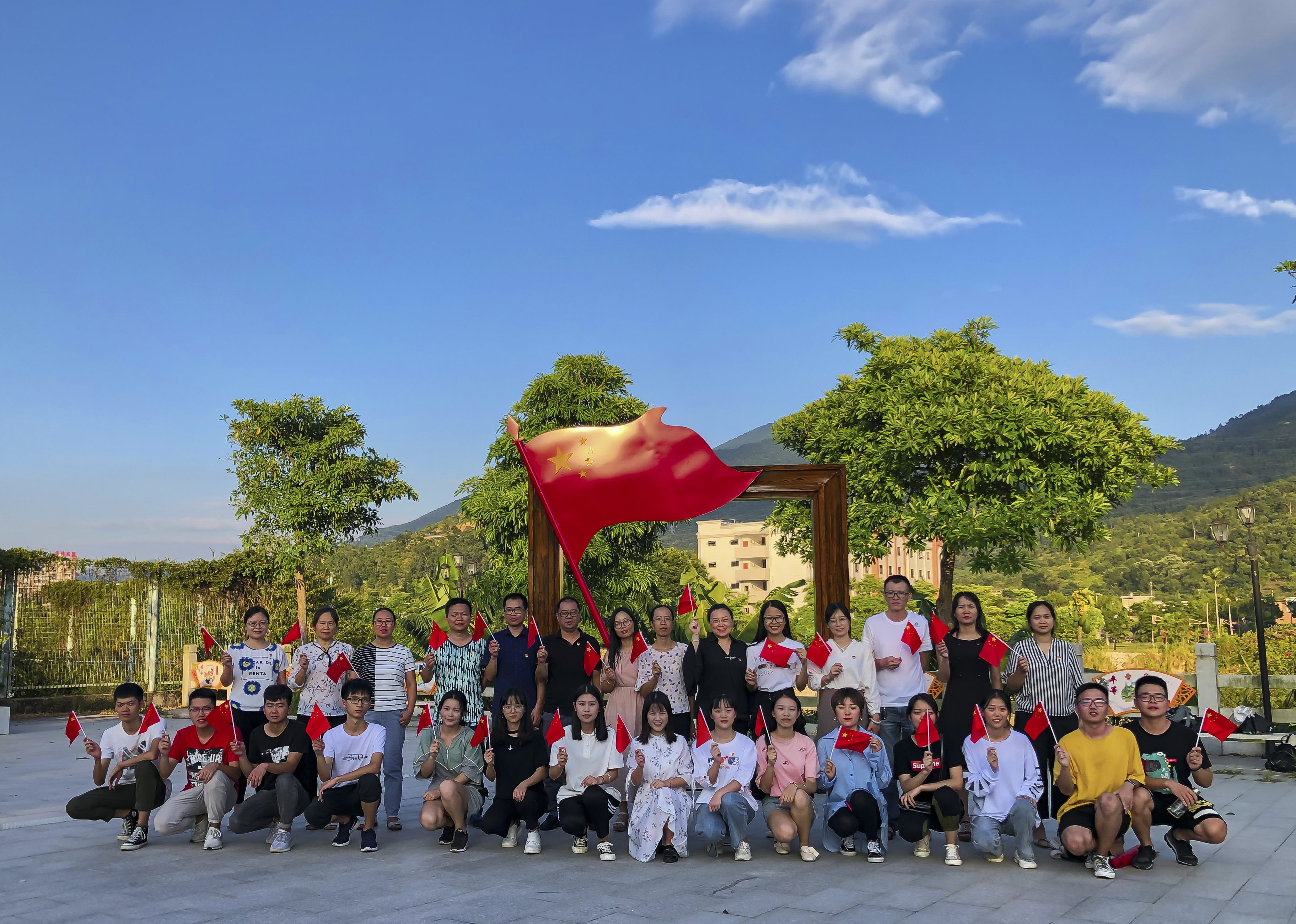 根据校党委“不忘初心 牢记使命”主题教育工作部署,在新中国70周年即将到来之际,学院党总支特别开展以“我和我的祖国”为主题的主题党日活动,党员们在学校各处特色建筑与国旗合影,表达对伟大祖国母亲70岁华诞的真挚祝福和美好祝愿。