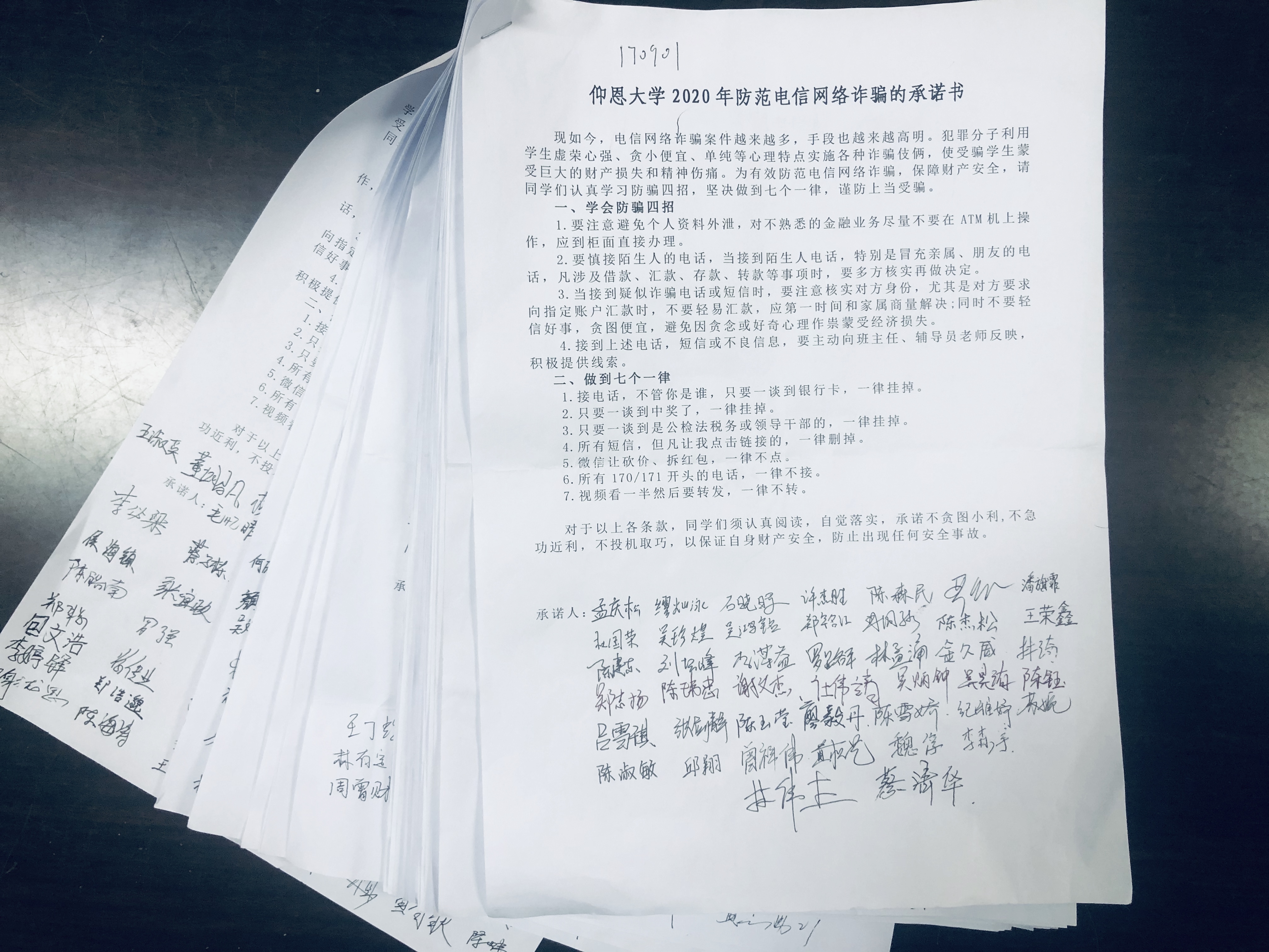 针对当前大学生群体面对各类诈骗案件时普遍存在的防范意识差、辨识能力弱、应对水平低的现象,betway官网领导高度重视,加强统一领导,要求各班要充分发挥课堂教学的主渠道作用,守好意识形态阵地,尤其正值疫情防控攻坚期、新生开学关键期,要让学生了解、掌握防范电信诈骗的基本常识,进一步提高防诈骗意识,不断增强学生抵制电信诈骗的“免疫力”。