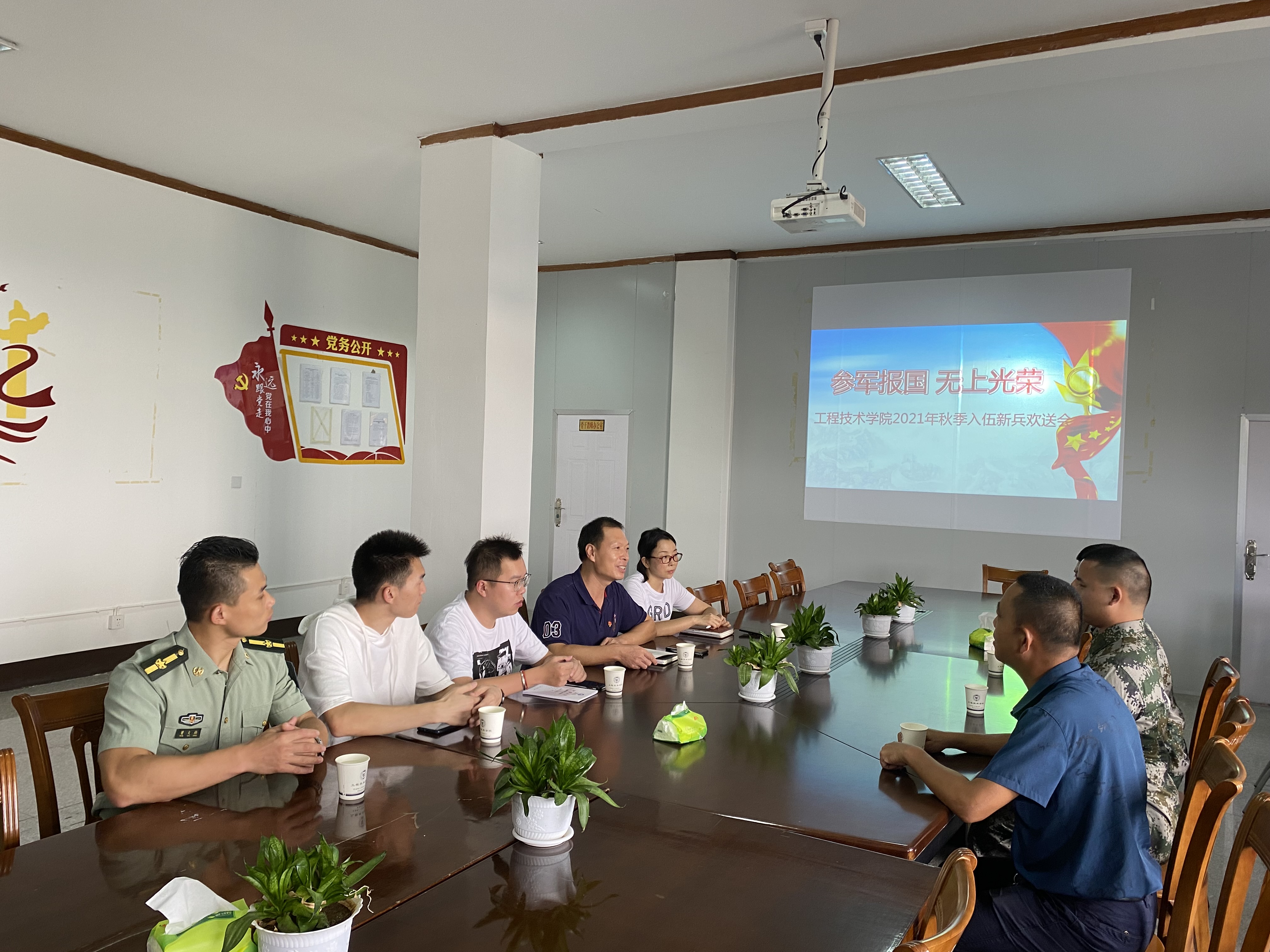 9月9日下午,betway西汉姆联官网2021年直招士官入伍欢送会在泽钏楼四楼举行,欢送陈杰松、黄伟龙两位同学应征入伍。学院党总支书记曾凤生、副院长李影、党总支副书记吕思仁、校武装部曾文档等老师出席了欢送会。