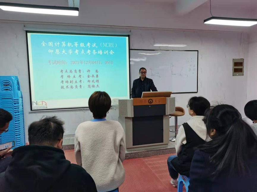 培训会上,简榕杰主任传达了福建省考试院相关文件精神和有关考试要求,从考试的基本情况、考场管理、考场布置、监考操作流程、监考要求、考试作弊的防范、监考中常见的问题等方面为全体考务、监考人员作了培训。