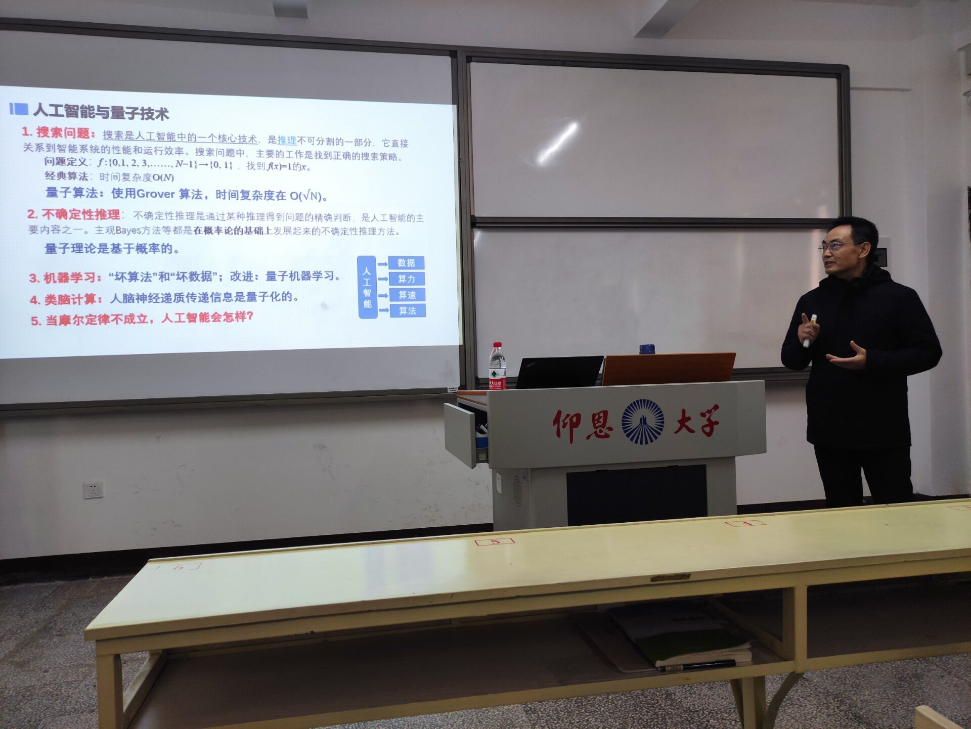 2021年1月6日下午,在第一教学区吉隆楼304,南通大学博士生导师管致锦教授应邀来校作《传统计算视角下的量子计算——可逆(量子)线路映射问题》讲座,校长助理鲍莹玉、校长助理石羊、betway官网全体教师与学生代表一同聆听此次讲座。 讲座上,管教授分析了传统计算的局限,通过大量实例生动形象地诠释量子计算研究内容与研究方法、可逆计算与量子计算的关系,可逆计算的主要研究领域以及人工智能与量子技术的融合点等内容。同时结合自身研究工作展示量子计算的应用领域的可实践性,拓宽了广大师生的视野。