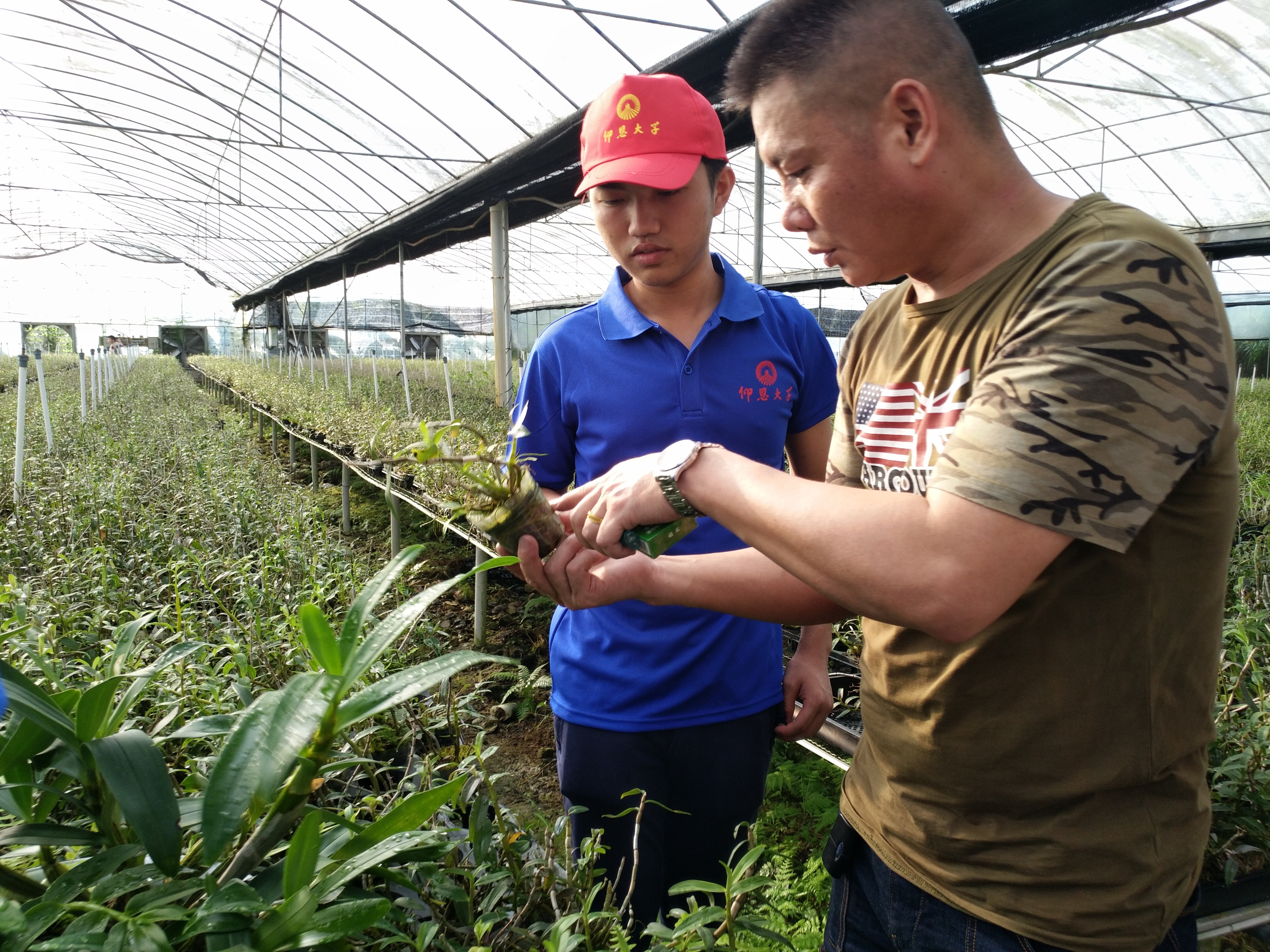 余村长给队员讲解如何培育石斛苗