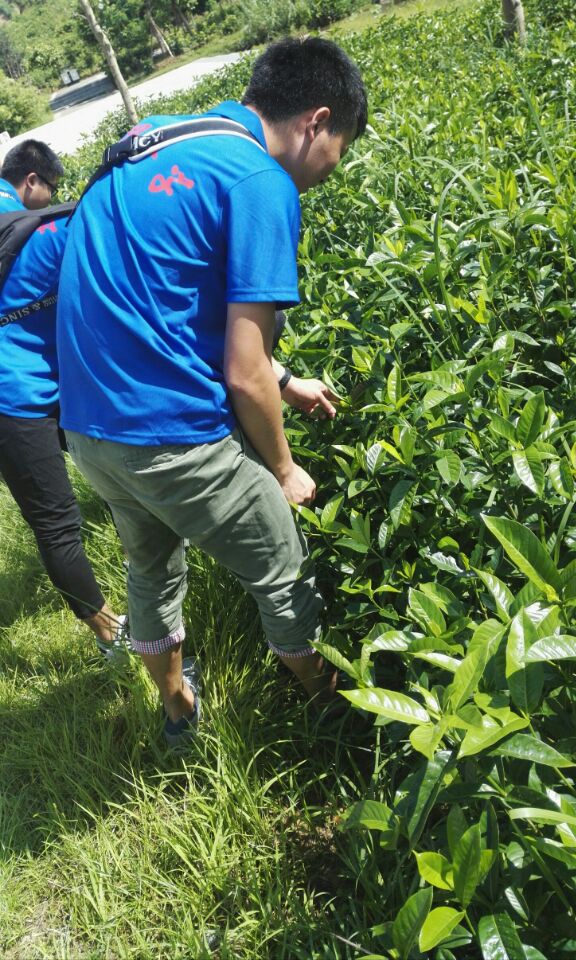 同学们在茶学院工作人员的带领下进入校园,前往校内的茶田实验基地与茶文明史馆参观学习。期间茶学院同学热心的为我们引路并为我们介绍学校的历史和校园风光。在参观实验基地的过程中,同学们还进入了茶田,近距离观察绿茶枝叶的形状以及茶田特殊的构造。