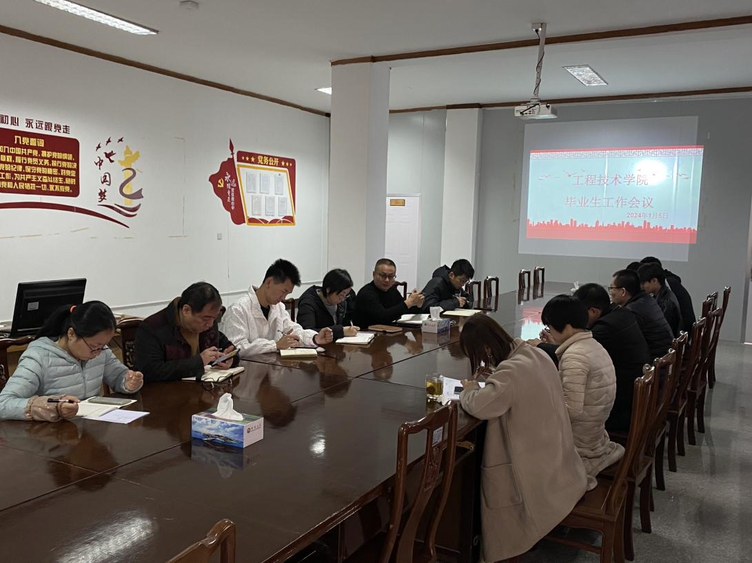 会上,金承勇总结了2023届毕业生就业工作开展情况,通报了学院2023届毕业生就业落实率,强调了就业工作对于学校高质量发展的重要性,分析研判了当前就业形势及工程技术学院促就业工作存在的主要问题,并对2024届毕业生就业工作作出部署。他指出,要重视跟踪调研,严格统计监测,准确把握毕业生就业意向,提供精准化的就业指导与服务;要加强校企合作,为毕业生广拓就业渠道和就业岗位。