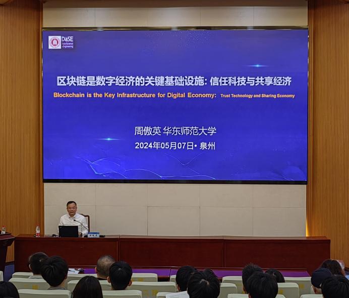 5月7日上午,betway西汉姆联官网在第一教学区多功能报告厅顺利举办仰恩大讲堂第三十九讲。华东师范大学“智能+”研究院院长、数据学院教授,中国计算机学会会士、常务理事、数据库专委会主任周傲英教授应邀莅临作《区块链是数字经济的关键基础设施:信任科技与共享经济》专题讲座,讲座由betway西汉姆联官网党总支书记曾凤生主持,两百余位师生代表聆听讲座。