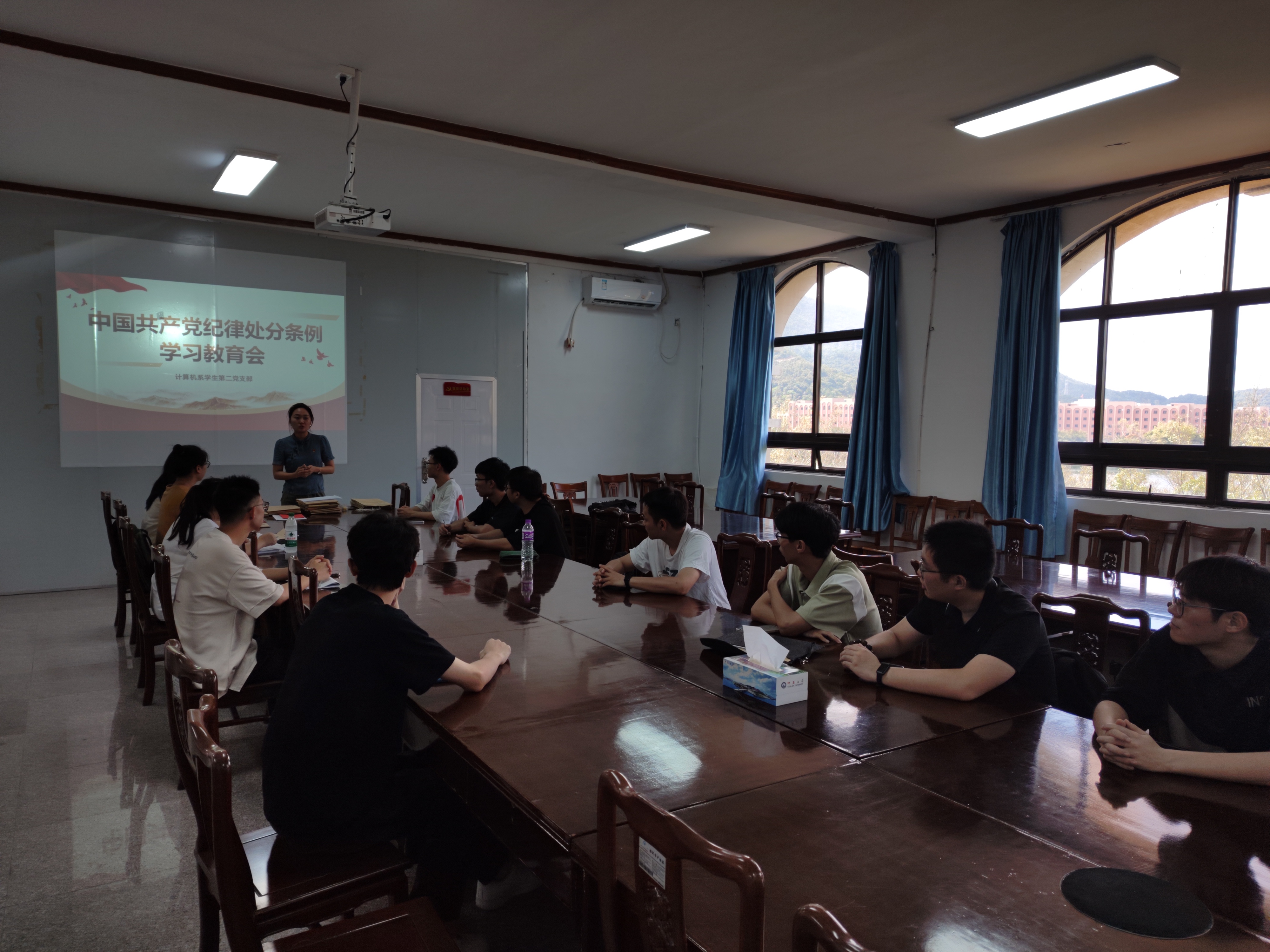 为扎实开展党纪学习教育,进一步提升毕业生党员党性修养,走好迈入社会的第一步,6月24日上午,计算机系学生第二党支部在泽钏四楼会议室举办“重温入党誓词,争做优秀党员”毕业生党员行前教育会,支部全体毕业生党员参会,大会由支部书记李明璇老师主持。大会开始前,与会人员一同观看了《2024,以奋斗起笔》纪录片,共同回顾中国共产党百年奋斗的光辉历程,展望中华民族伟大复兴的光明前景。