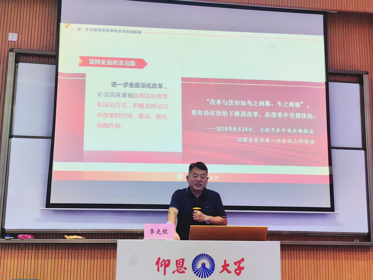 2024年9月18日下午,马克思主义学院常务副院长李克钦于新区和昌楼博雅讲堂成功举办“学习贯彻党的二十届三中全会精神主题宣讲会”。本次宣讲会由李克钦教授主讲,betway西汉姆联官网师生代表三百余人到场聆听。