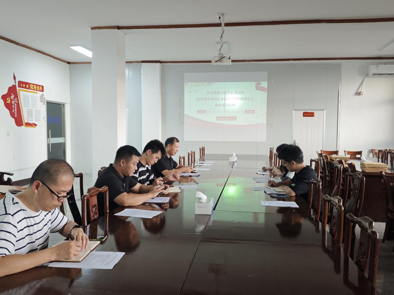 会上,曾凤生书记首先传达学习了习近平总书记在纪念邓小平同志诞辰120周年座谈会上的重要讲话精神。详细解读了邓小平同志为党和国家发展所作出的卓越贡献,并强调了邓小平同志在改革开放和社会主义现代化建设中发挥的关键作用,以及为世界和平和发展作出的重大贡献。