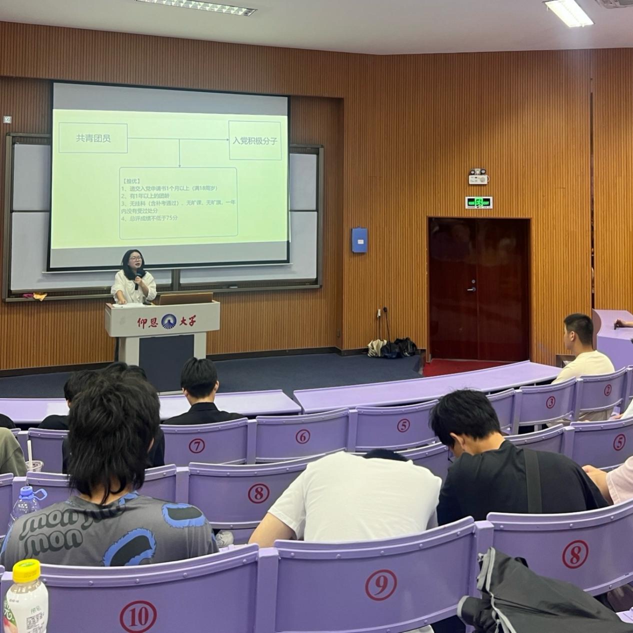 首先,由刘炫圻老师介绍入团的相关事宜,从撰写入团申请书开始,进行一系列的解析和说明,从基本成绩要求,分配团员名额以及入团所需要的条件等等,鼓励学生积极入团,呼吁大家主动提升自己,贡献力量。
