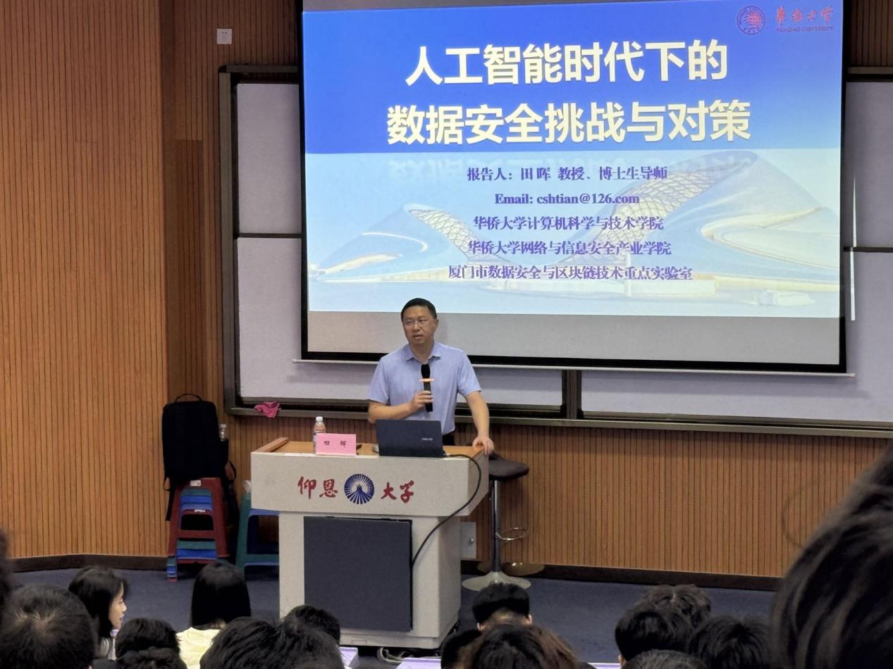 11月4日下午,betway西汉姆联官网在和昌教学楼博雅讲堂举办题为“人工智能时代下的数据安全挑战与对策”的主题讲座。华侨大学计算机科学与技术学院院长田晖教授莅临本校进行演讲,betway西汉姆联官网师生代表到场聆听。