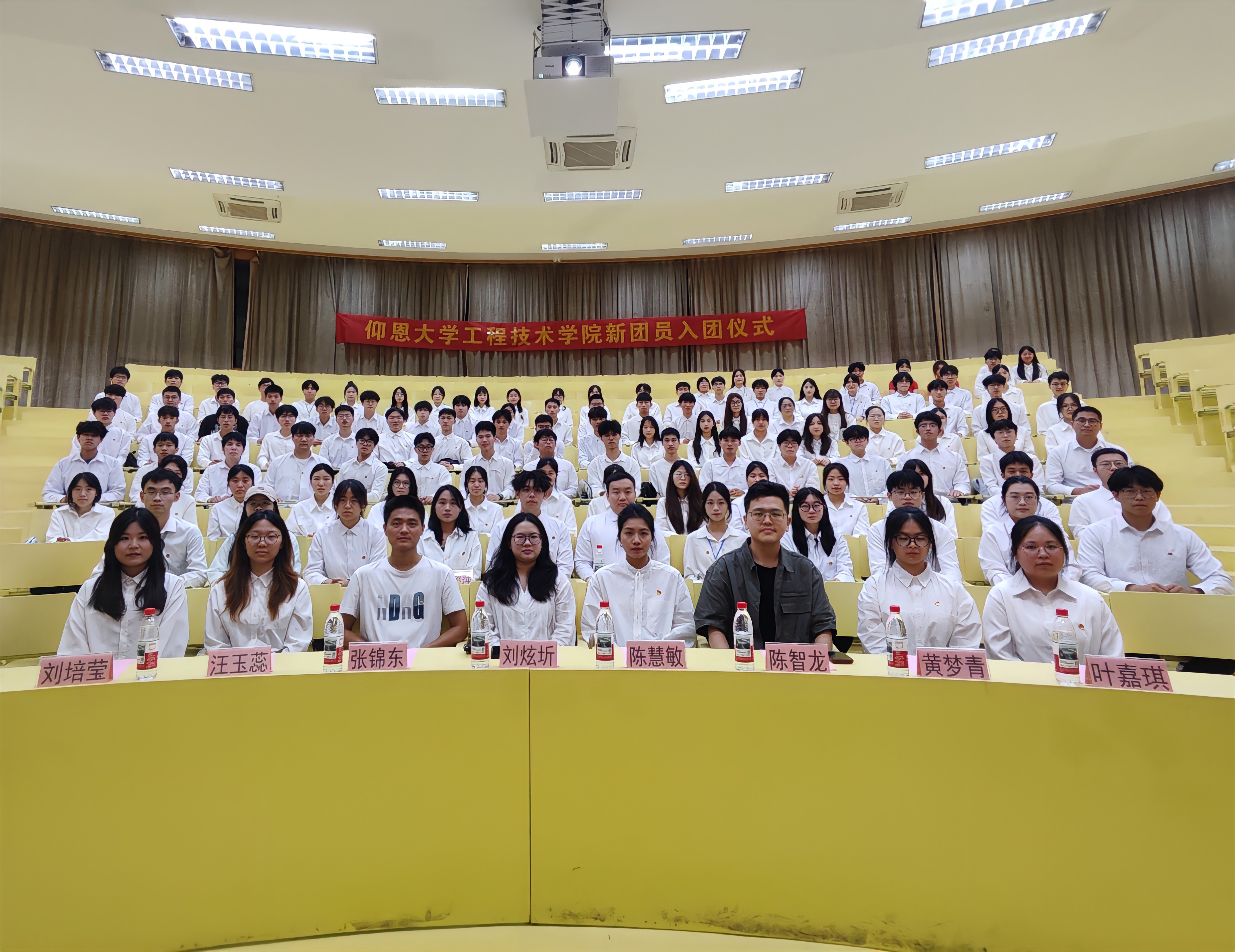 院团委叶嘉琪同学说明入团仪式的意义并宣读新团员名单。随后,院团委老师为新团员代表佩戴团徽和颁发团章、团员证。颁发礼后,在院团委刘培莹同学的带领下,全体新团员面向团旗庄严宣誓,老团员重温入团誓词。入团介绍人代表林晓婷宣读了《团章》中有关团员义务和权利的条款,帮助新团员明确使命。