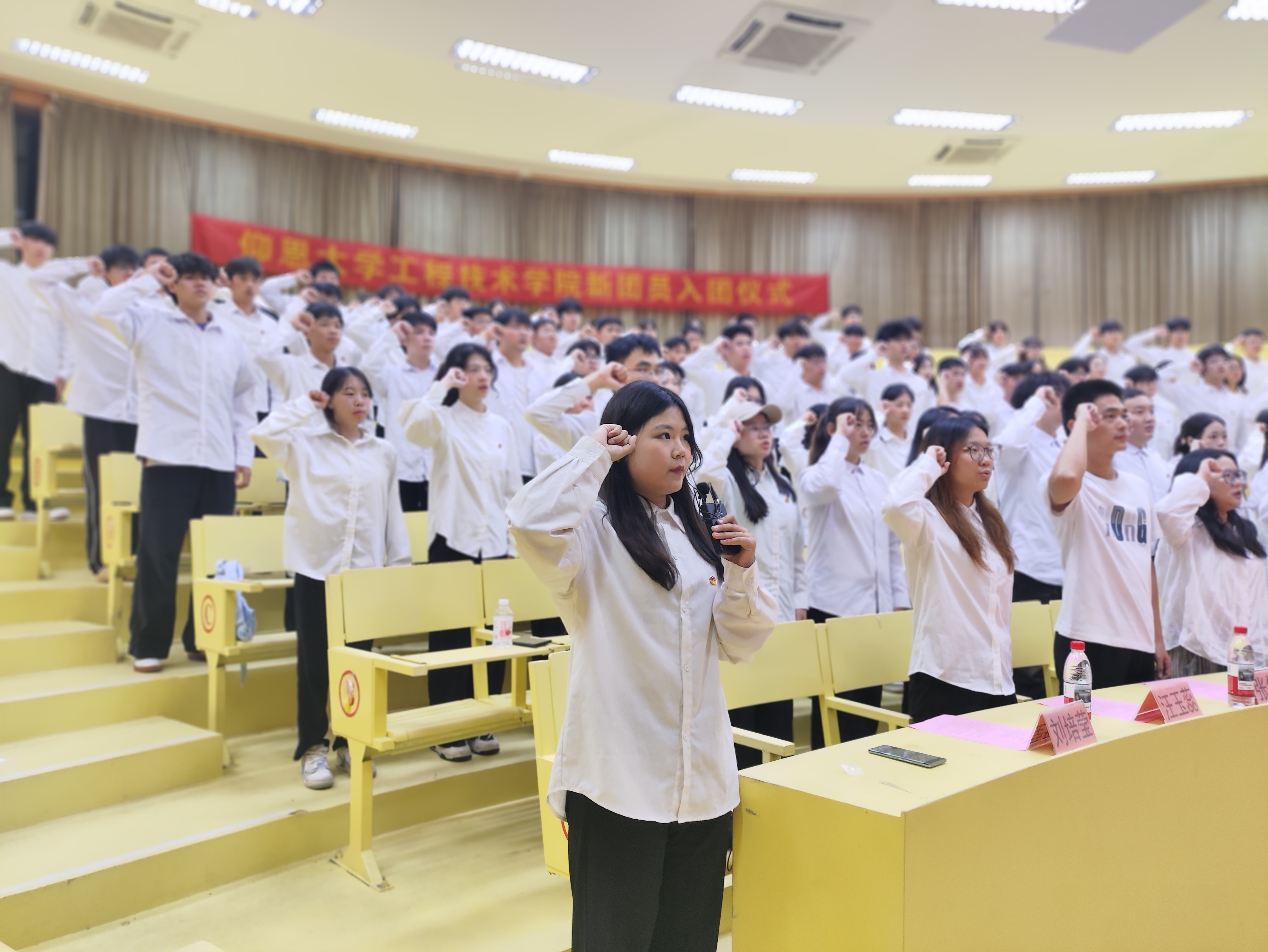 为加强团员思想引领,增强团组织凝聚力,2025年5月22日晚,betway西汉姆联官网团委于惟勤讲堂举行新团员入团仪式。betway西汉姆联官网团委及各系团总支老师、本学期全体新发展团员及院系学生代表参加本次入团仪式。本次仪式由洪鹏辉主持,仪式在庄严的国歌声中拉开序幕。