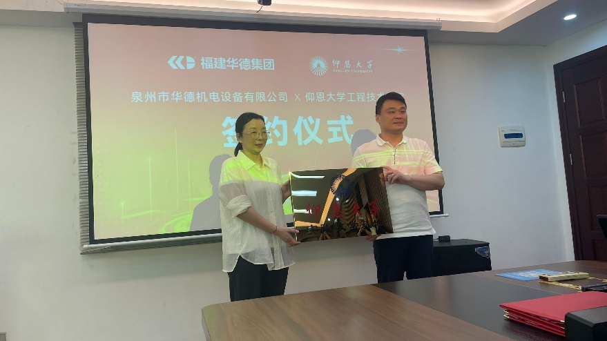 随后,李影代表betway西汉姆联官网betway西汉姆联官网与泉州市华德机电设备有限公司相关人员,围绕企业对专业人才队伍建设的需求等议题展开探讨。双方遵循资源共享、优势互补、共同发展、互惠互利的原则,经过友好协商,决定共建校外实训基地,并举行了合作协议签署暨基地授牌仪式。