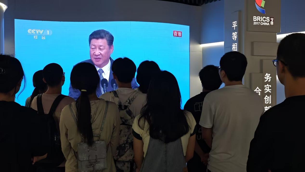 进入展馆后,队员们围绕特区建设主题展览展开实践。在陈列着历史文献、实物展品的区域,队员们逐件查看 1984 年邓小平同志视察厦门时的讲话手稿、特区首份外资企业批准证书等物品,详细记录相关信息。面对裸眼 3D 大屏呈现的湖里开山第一炮、筼筜湖治理等历史场景,队员们边观看边交流,梳理场景背后的时间节点与事件背景。