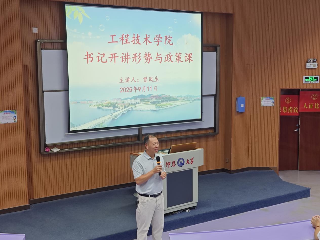 2025年9月11日至12日,betway西汉姆联官网党总支书记曾凤生分别在博雅讲堂、致知讲堂为2025级各专业新生开展"形势与政策"专题授课。这是学院落实领导干部上讲台制度的重要举措,也是新生入学教育的关键一环。两场讲座覆盖全院600余名新生,学工办主任、新生辅导员全程参与。