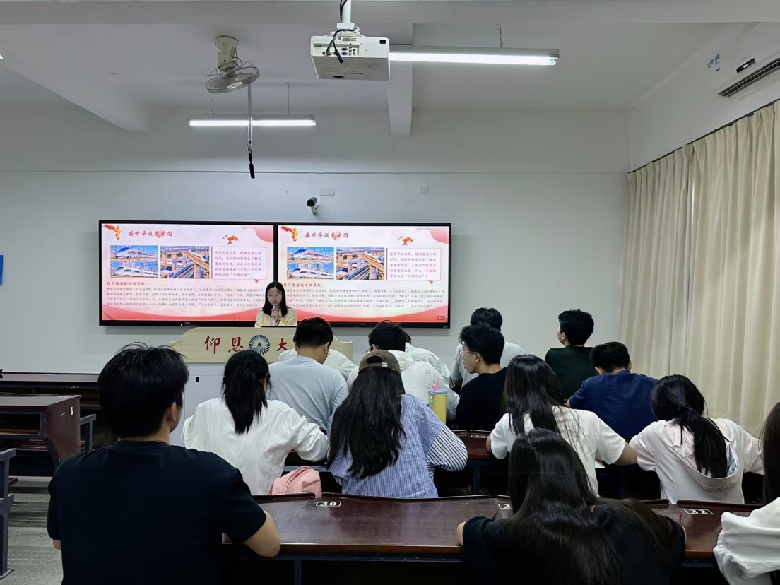 活动伊始,学习党员代表黄梦青、陈芳婷解读习近平总书记重要讲话精神,系统回溯中国人民抗日战争的壮阔历程,并聚焦学习中国抗战的国际地位与精神传承,激励青年学子在科技自立、乡村振兴、国防现代化等领域主动担当,摒弃“躺平”心态,以青春之力为中华民族伟大复兴注入动能。