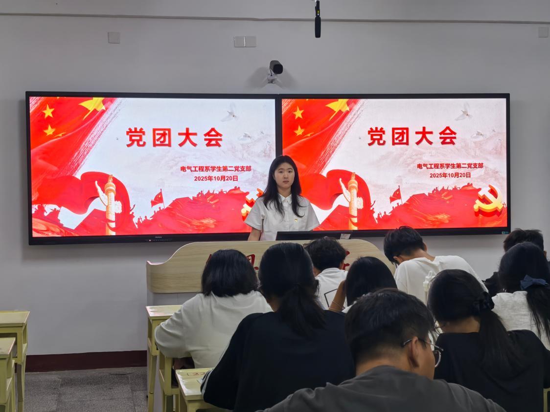 为帮助新生明晰党团发展路径,筑牢理想信念根基,10月20日晚,betway西汉姆联官网电气工程系学生第二党支部分别于第一教学区吉隆教学楼301、305教室顺利召开2025级新生教育党团大会。会议由党支部成员欧阳翔主持,2025级电气工程及其自动化2班、2025级电气工程及其自动化3班、2025级电气工程及其自动化专升本2班全体同学到场聆听。