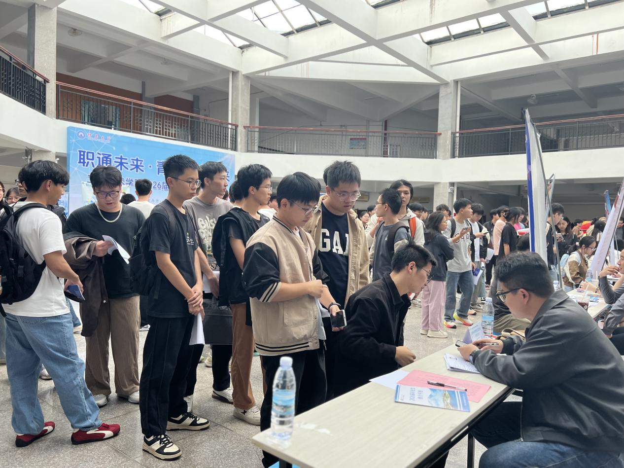 招聘会现场气氛热烈,秩序井然。各企业通过精心布置的展位、形象展板、宣传视频及资料,全面展示企业文化、岗位需求与发展前景。毕业生手持简历积极投递,就专业方向、职业规划等与企业代表深入交流,展现出清晰的求职意向与良好的专业素养。