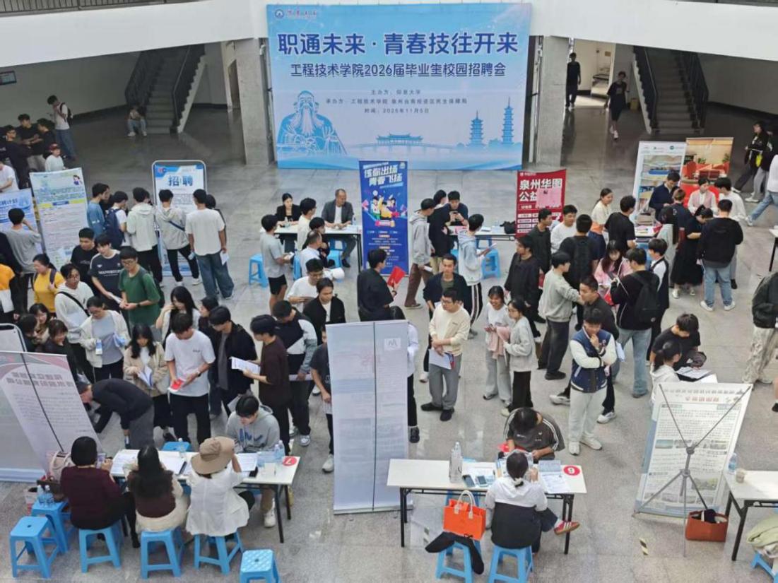 2025年11月5日,betway西汉姆联官网betway西汉姆联官网、宏船书院联合泉州台商投资区民生保障局,于和昌教学楼举办“职通未来 青春技往开来”2026 届毕业生校园招聘会。本次招聘会汇聚泉州天津大学集成电路及人工智能研究院、福建泉工股份有限公司、福建省索尔诺家居用品有限公司等二十余家优质企业,为毕业生搭建高效就业平台,提供多样化职业发展通道。