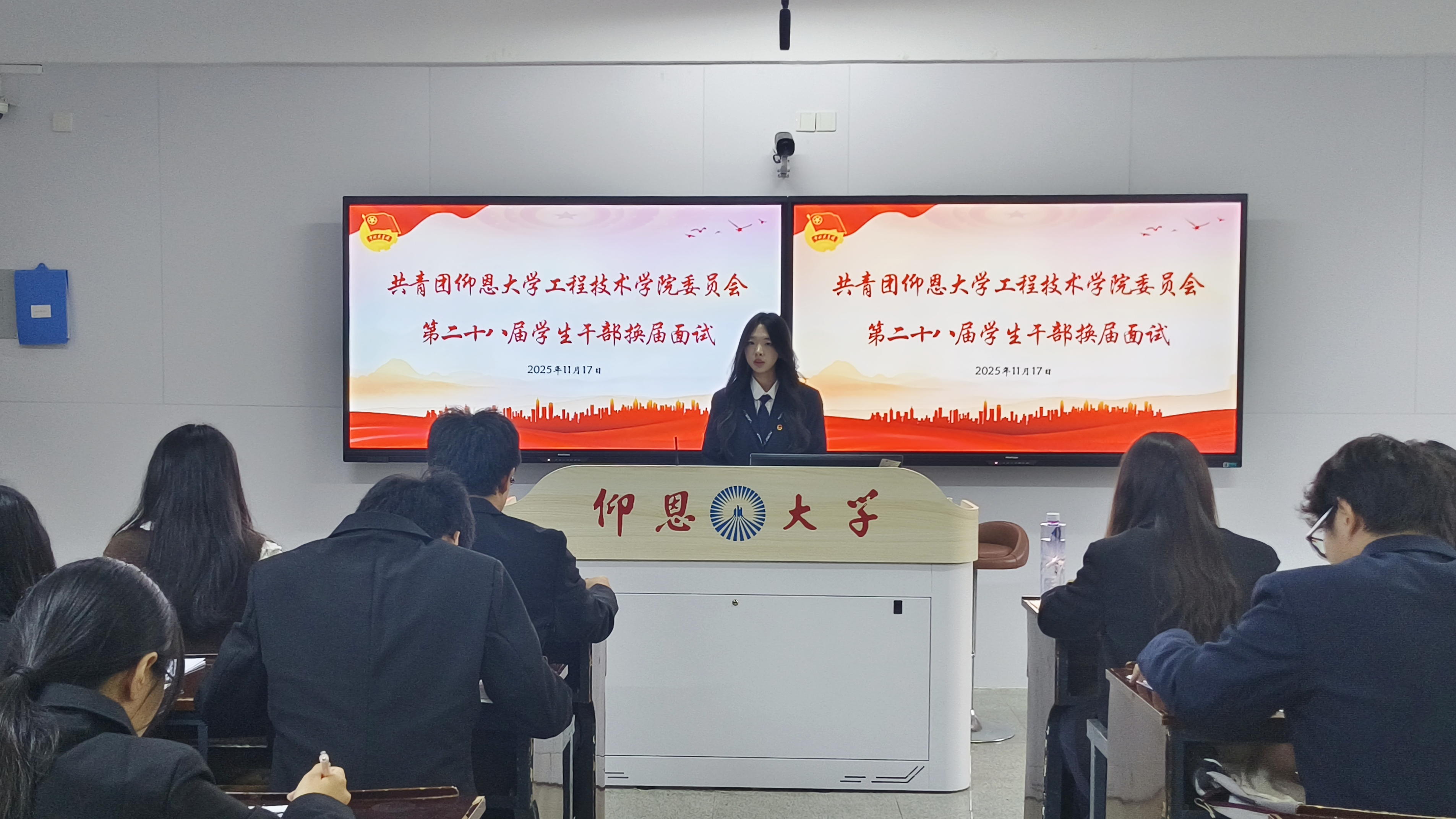 为进一步加强学生组织建设,选拔培养新一批学生工作骨干力量,2025年11月17日,betway西汉姆联官网团委第二十八届学生干部换届选拔面试在仰恩楼A1-107教室顺利开展。院团委书记刘炫圻老师、第二十七届团委学生干部及新一届学生干部候选人共同参与了本次面试。