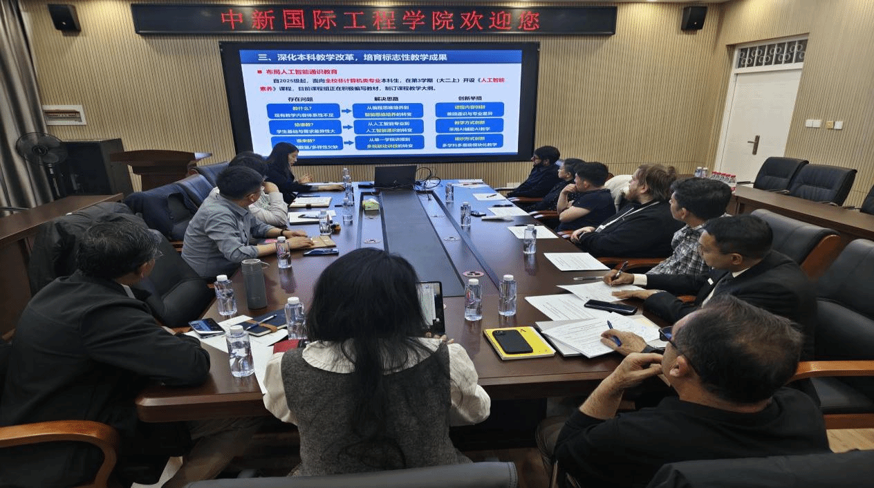 交流会上,赵德宏就本科教学现状、管理体系及与新方深化合作的改进方案展开详细论述,重点强调了教学计划优化、资源整合及师资培训等关键环节。陈智丽系统介绍了计算机学院的发展历程,从学科建设、科研创新到人才培养,全面展示了学院取得的显著成果,并展望了未来在人工智能、大数据等领域的学科发展方向。麦迪分享了中新教育模式的差异,特别关注了文化适应、教师角色转变及学生压力管理等方面,结合自身实践经验,提出了通过优化课程设计、加强心理辅导、丰富课外活动等举措,有效减轻学生学习压力的具体方法。
