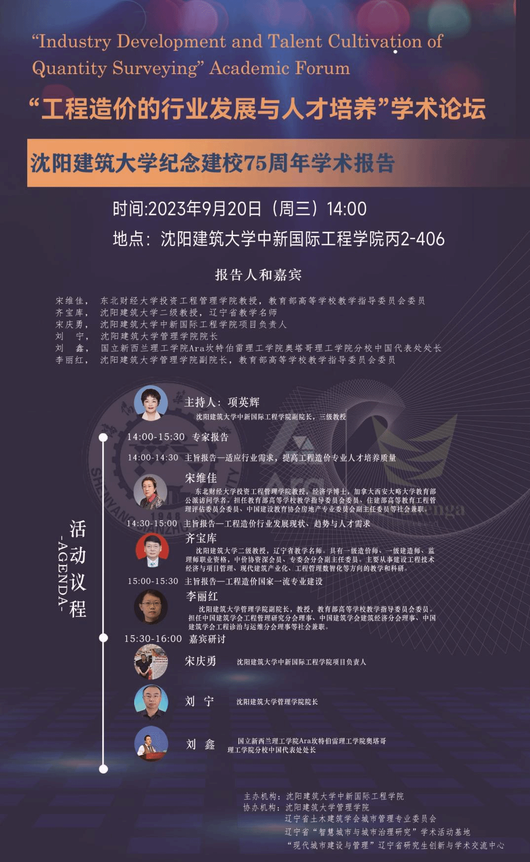会议预告|beat365在线唯一官网举办纪念沈阳建筑大学建校75周年学术报告(第一场)——工程造价行业发展与人才培养