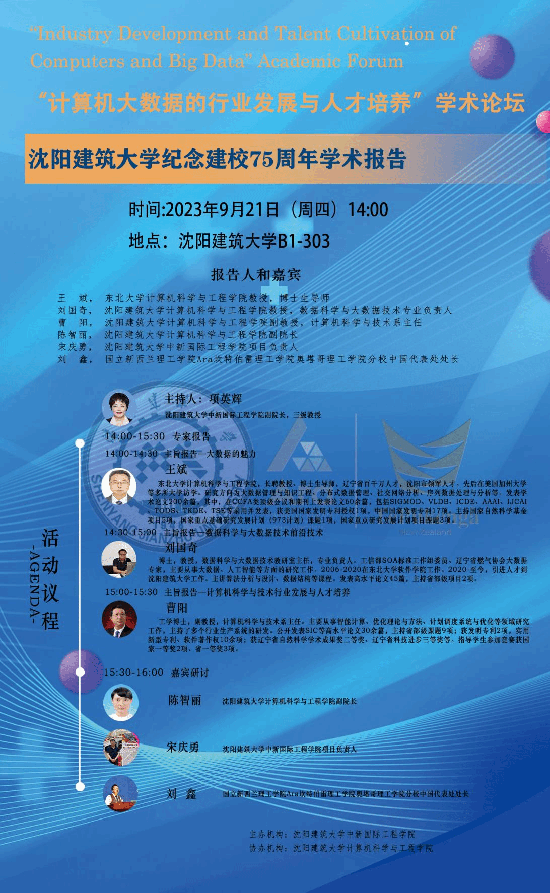 会议预告|beat365在线唯一官网举办纪念沈阳建筑大学建校75周年学术报告(第二场)—计算机大数据的行业发展与人才培养