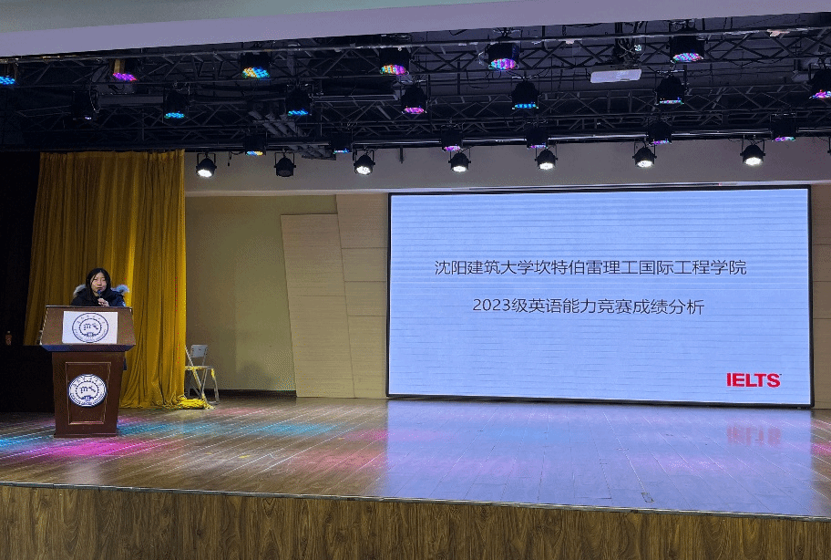 新方教师代表郭化南对本次新生英语能力竞赛结果做分析总结,主要就雅思评分标准和本次整体成绩进行评估分析,帮助同学们了解未来的留学方向,强调英语学习的重要性,要不断提高英语专业能力。